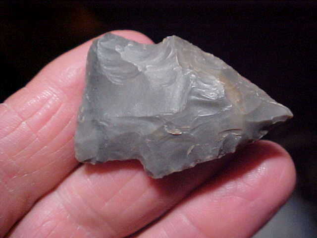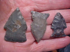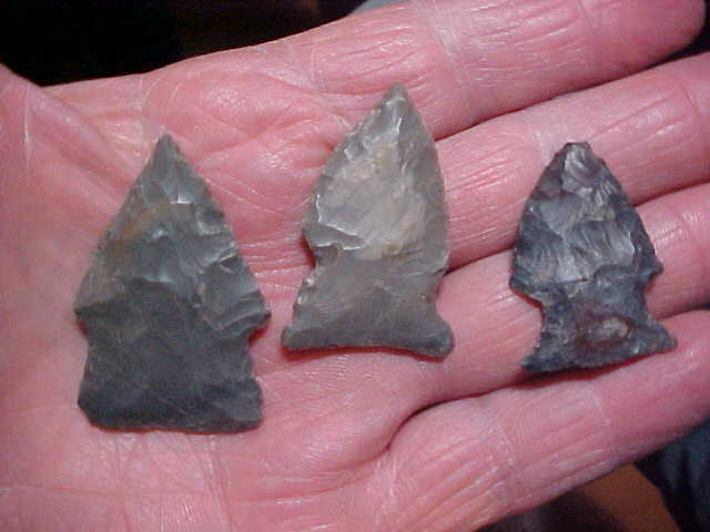 All three are differing shades-and-grades of Indiana Hornstone. These three, Hopewell in origin, are out of a Pike County, Indiana, collection, and several--four or five--in my collection. REAL, period. Not a one shows basal grinding, so my assumption is the finder was actively hunting a Hopewell site somewhere along the very twisting/ turning Patoka River--good points, longest is 1&3/4". Shipping is $8.00, checks or M.O>s are welcomed, but paypal is not used on my store--sorry--Roy A.