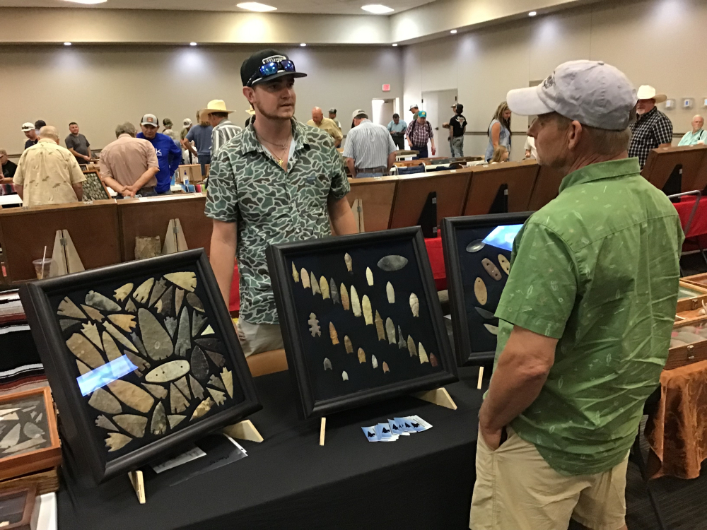 A few photos of the Gatesville show. The Mallett was found sticking up out of the mudd in Cowhouse Creek in Coryell County by Terry Reed - not ancient but old and unique. Brandon McDearman and Steve Mansfield comparing notes. Billy Martin, all Coryell County - Hill Country Diggers. Sam Williams with the Robert Talley collection. The knife is Coryell County, Cave Creek, Ensor Point in original handle. You don’t see too many San Jacinto points so this is an outstanding group, part of Chase and Carl Coleman’s collection.