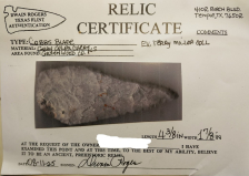 This large, beveled Cobbs Blade is made from a grey, fossiliferous chert, It was found in Greenwood Co., Kansas and comes with a Dwain Rogers COA. It would look great in your Cobbs frame!