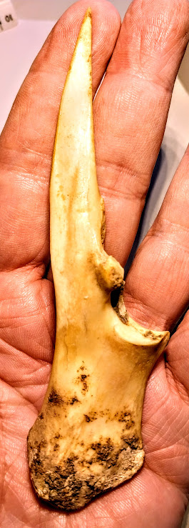 This sweet, Bone Trigger Awl was found near Muskegon Lake in Muskegon Co., Michigan. It is highly polished, classic in shape, and needle-tipped. This is the best Bone Trigger Awl I've ever owned!