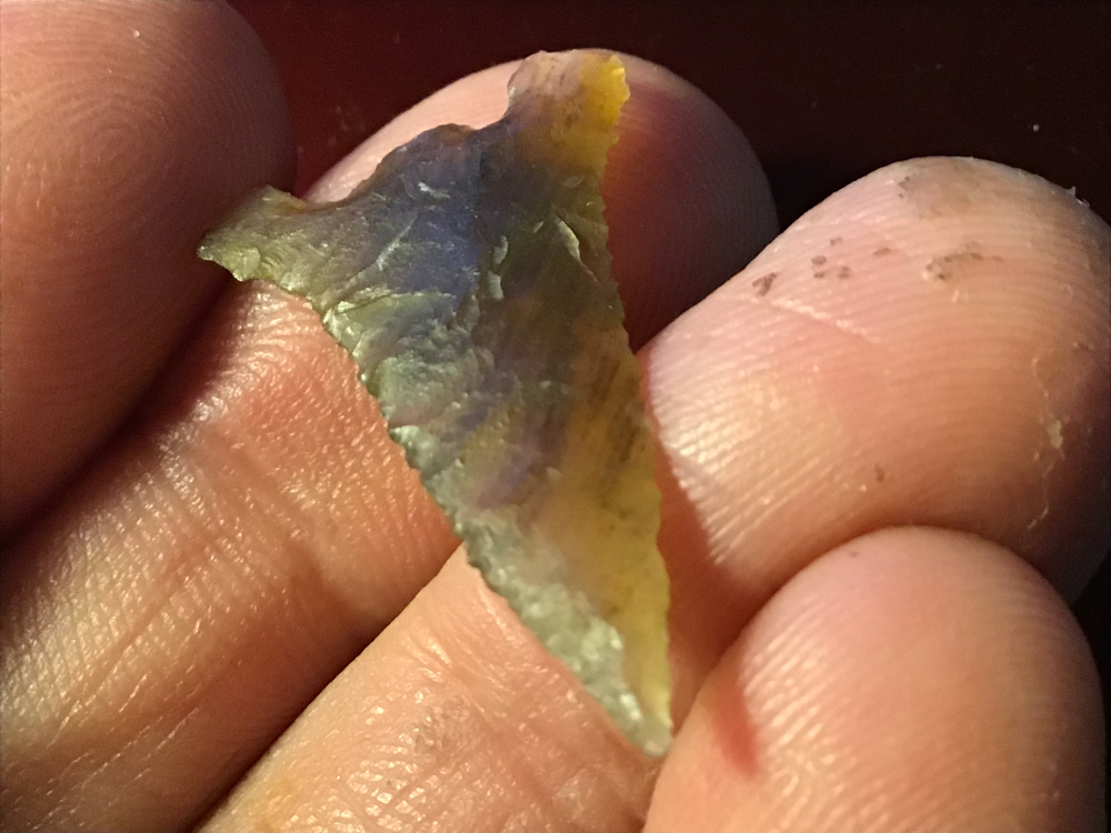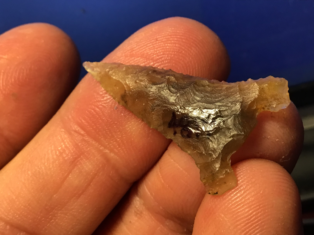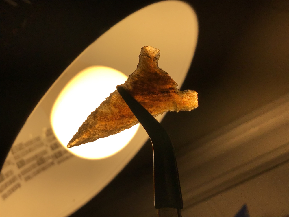 This is an oustanding point with the finder and provenance on the Bill German coa. Made of translucent agatized petrified wood with a needle tip, it has an anciently snapped base. I have the shipping. Ex Bill German