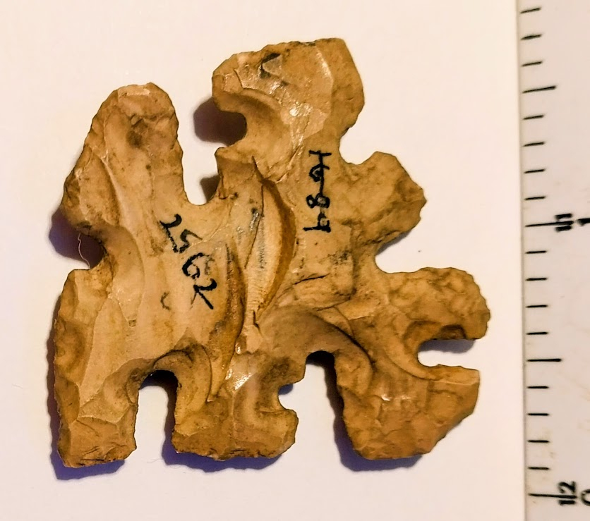 A very unique Eccentric Artifact for those who enjoy the unusual. It was found in Morgan Co., Indiana, and comes with a Dwain Rogers COA. It looks like an elaborate jig-saw puzzle piece make from flint!