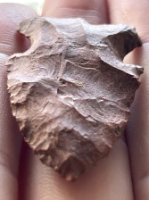 A nice Big Sandy found in Alabama. Made from bright red heat treated Fort Payne chert. Nicely made with a ground base.