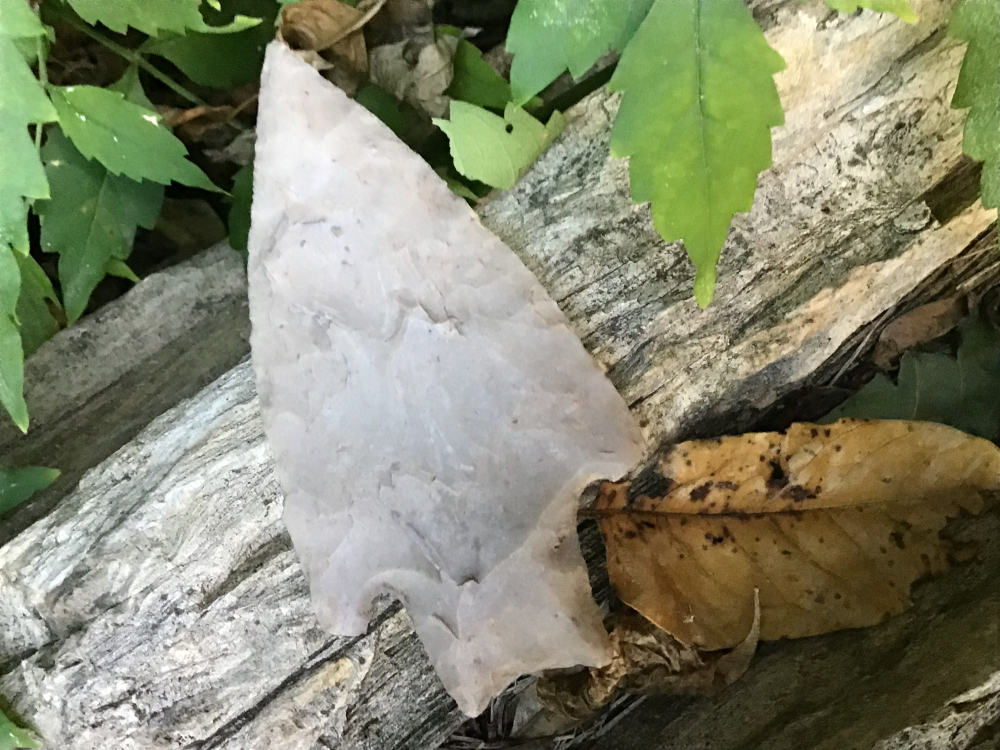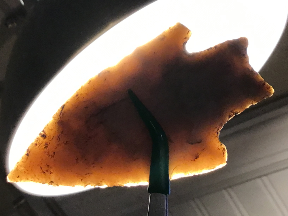 This is a nice sized Marshall recovered in Bandera county. It is thin and well flaked with small ancient dings on the barbs. Semi-Translucent, it has a good tip with fine pressure flaked lateral edges. I will guarantee authenticity and satisfaction.